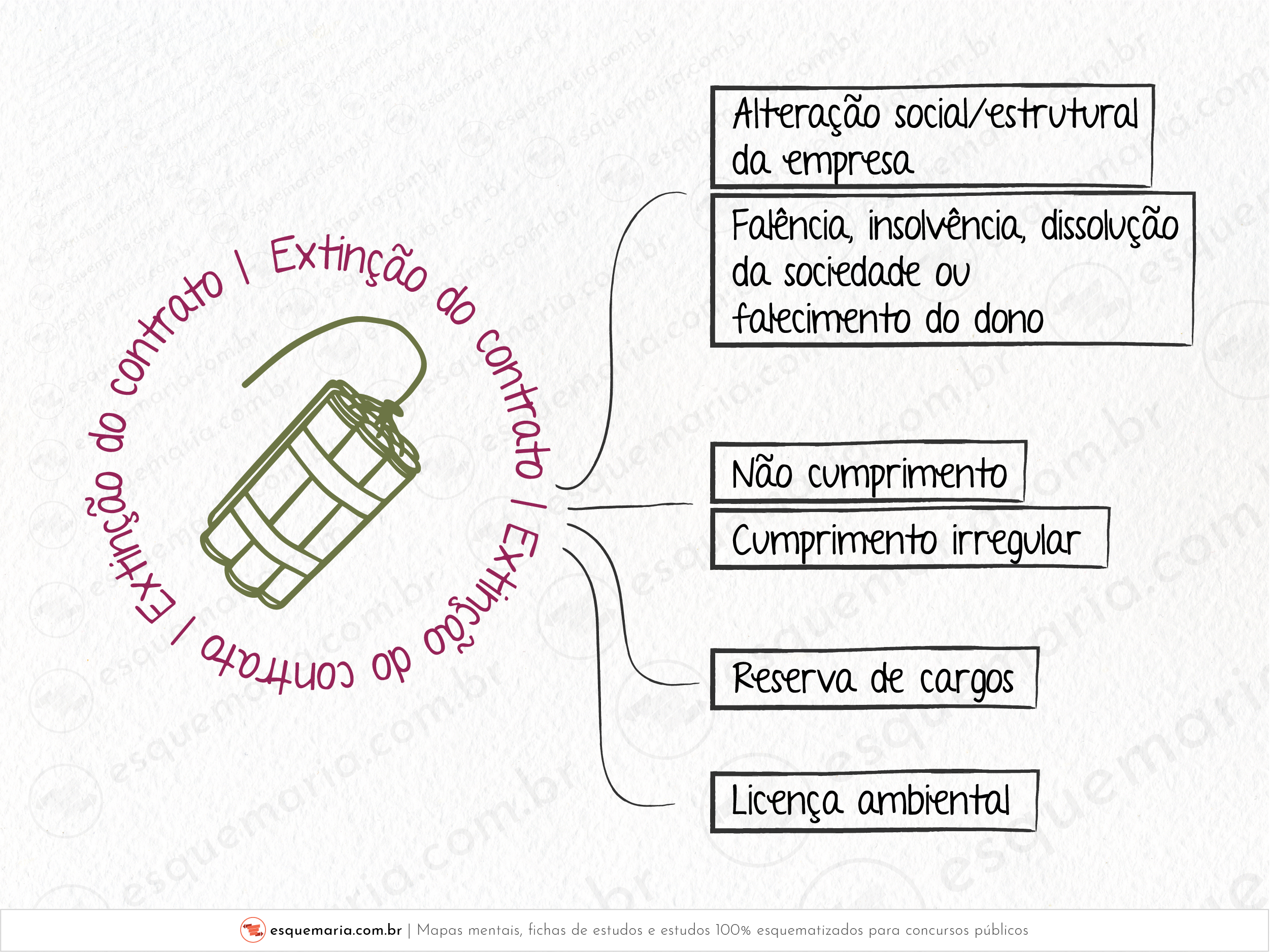 Vamos a um resuminho bem enxuto. As hipóteses de extinção do contrato são: