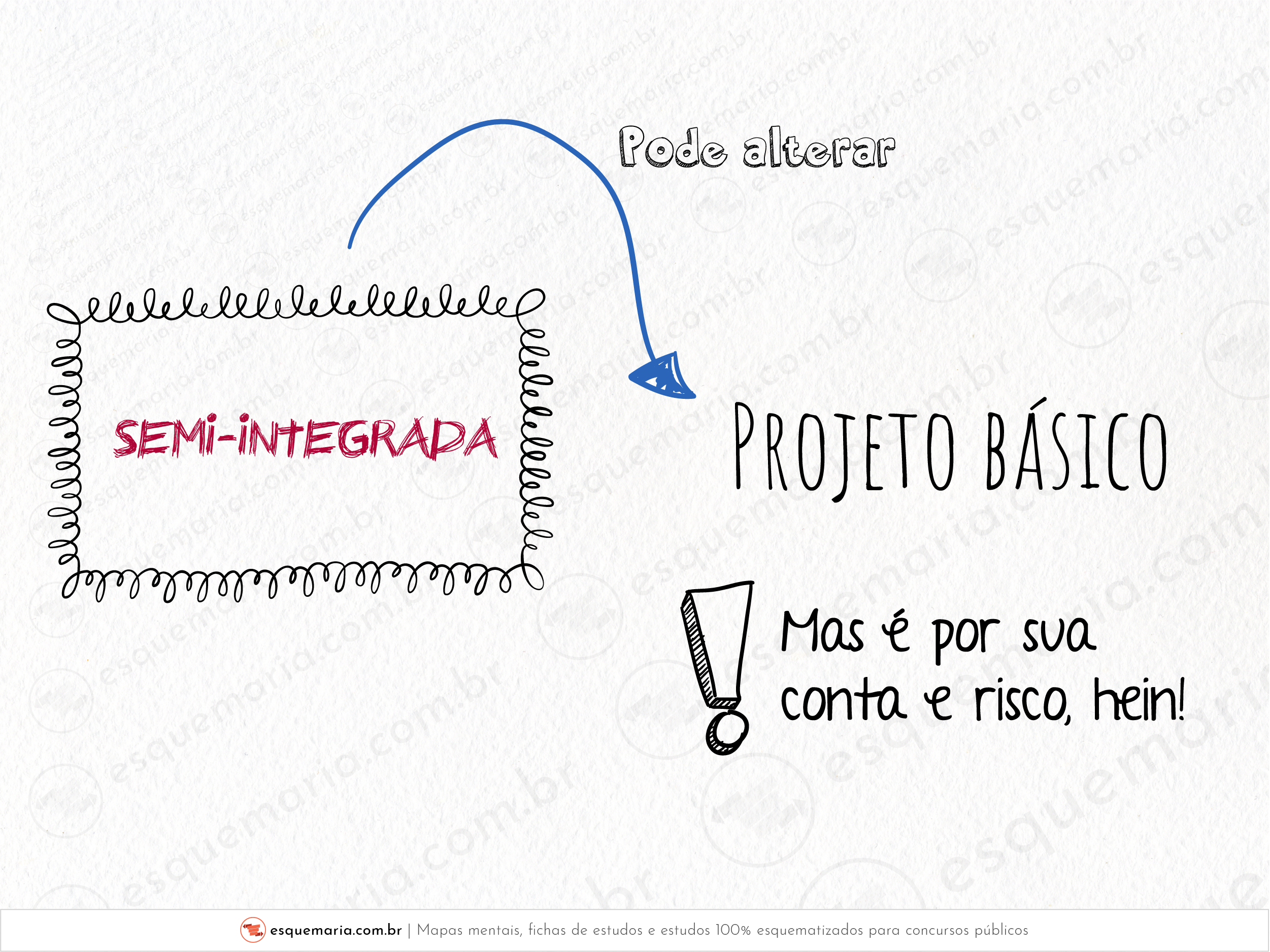 Só para complementar a alternativa, acho importante dizer: o projeto básico não é feito na semi-integrada. É apenas o executivo. Só que o projeto básico pode ser alterado pela empresa contratada e, nesse caso, ela assume os riscos!