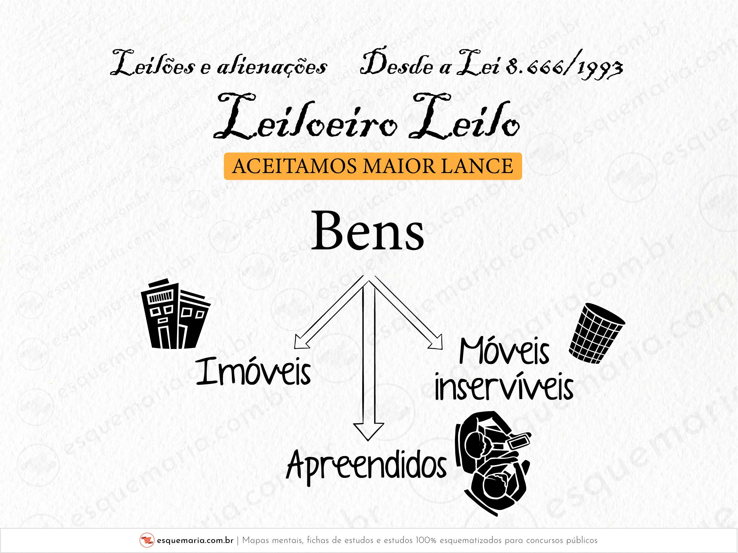 (4) Modalidade para alienação de bens imóveis ou de bens móveis inservíveis ou legalmente apreendidos a quem oferecer o maior lance.