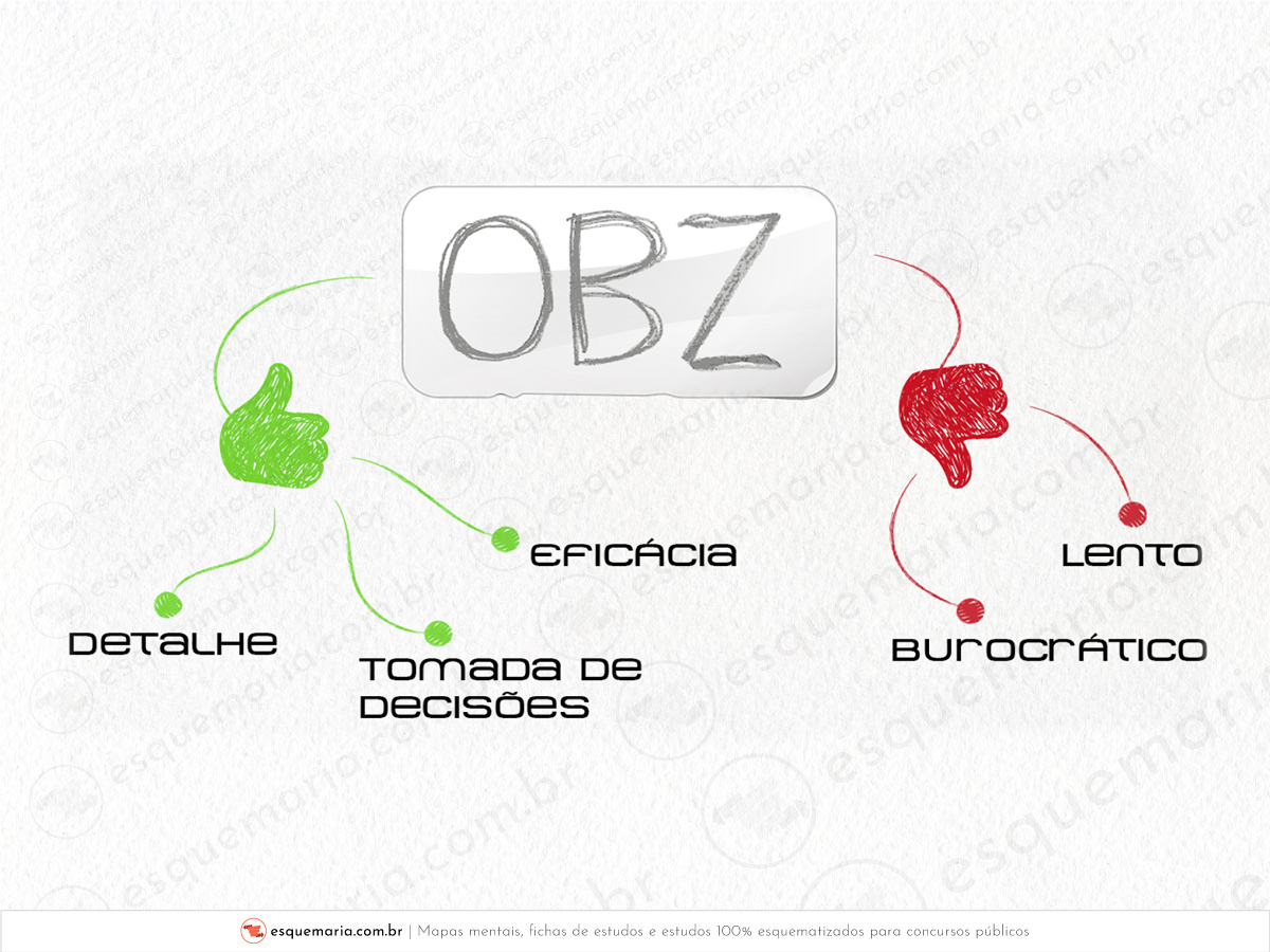 O último ponto destacado acima é muito importante, porque as pessoas geralmente ignoram esta parte (que cai MUITO em provas): na aplicação do OBZ, são praticados verdadeiros processos de decisão, pelos administradores. Imagine se no Esquemaria nós usássemos o OBZ: começaríamos do zero total, todo início de ano. Isso significa que teríamos que pensar e repensar todas as estratégias a ser utilizadas, todos os cursos a serem feitos, tudo do início. Imagine a quantidade de decisão que precisamos tomar, para que isso possa acontecer! | |