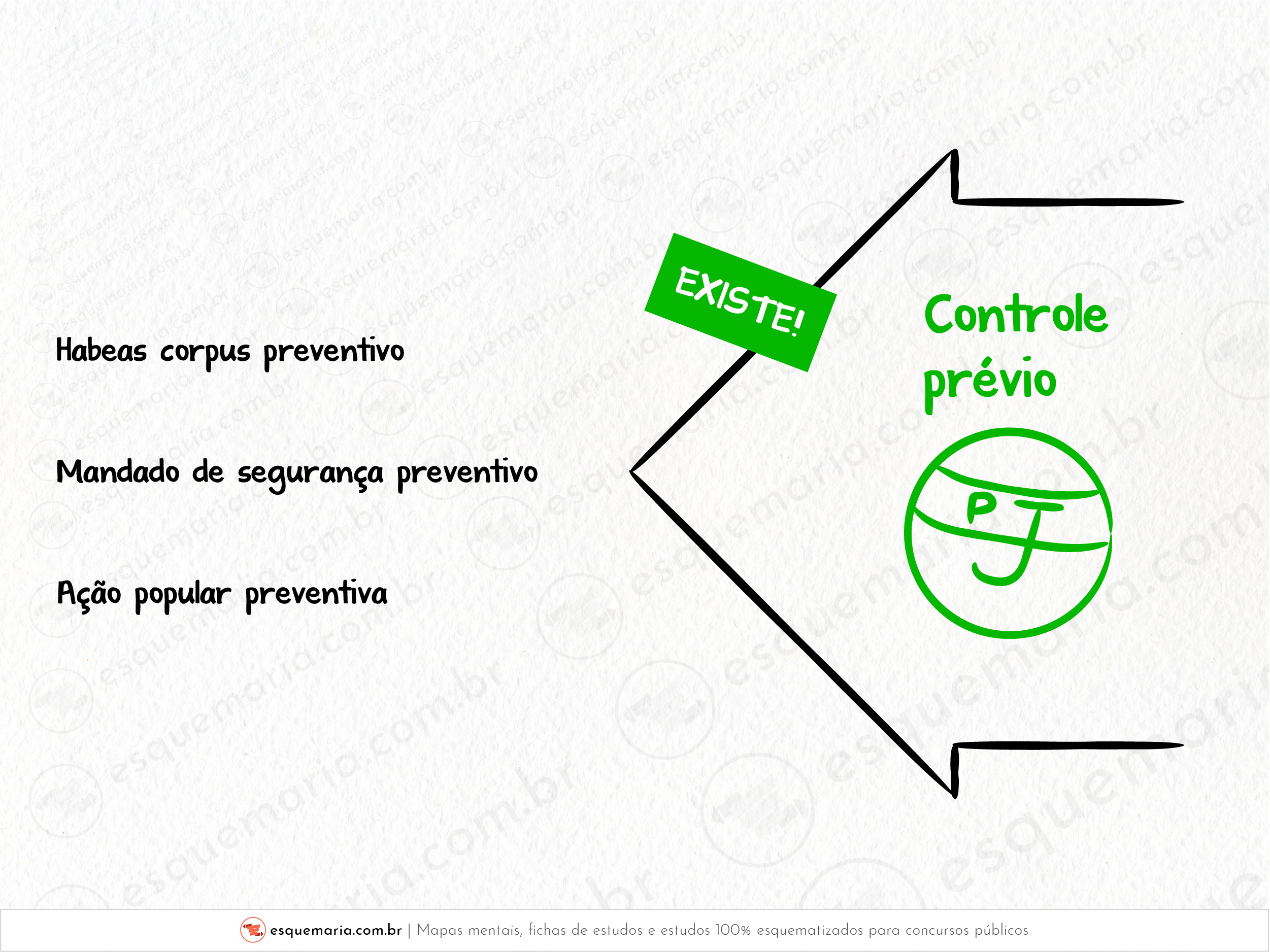 Então, sim! Existe controle prévio realizado pelo Judiciário. Não é comum, mas o Poder Judiciário realiza controle prévio, como: