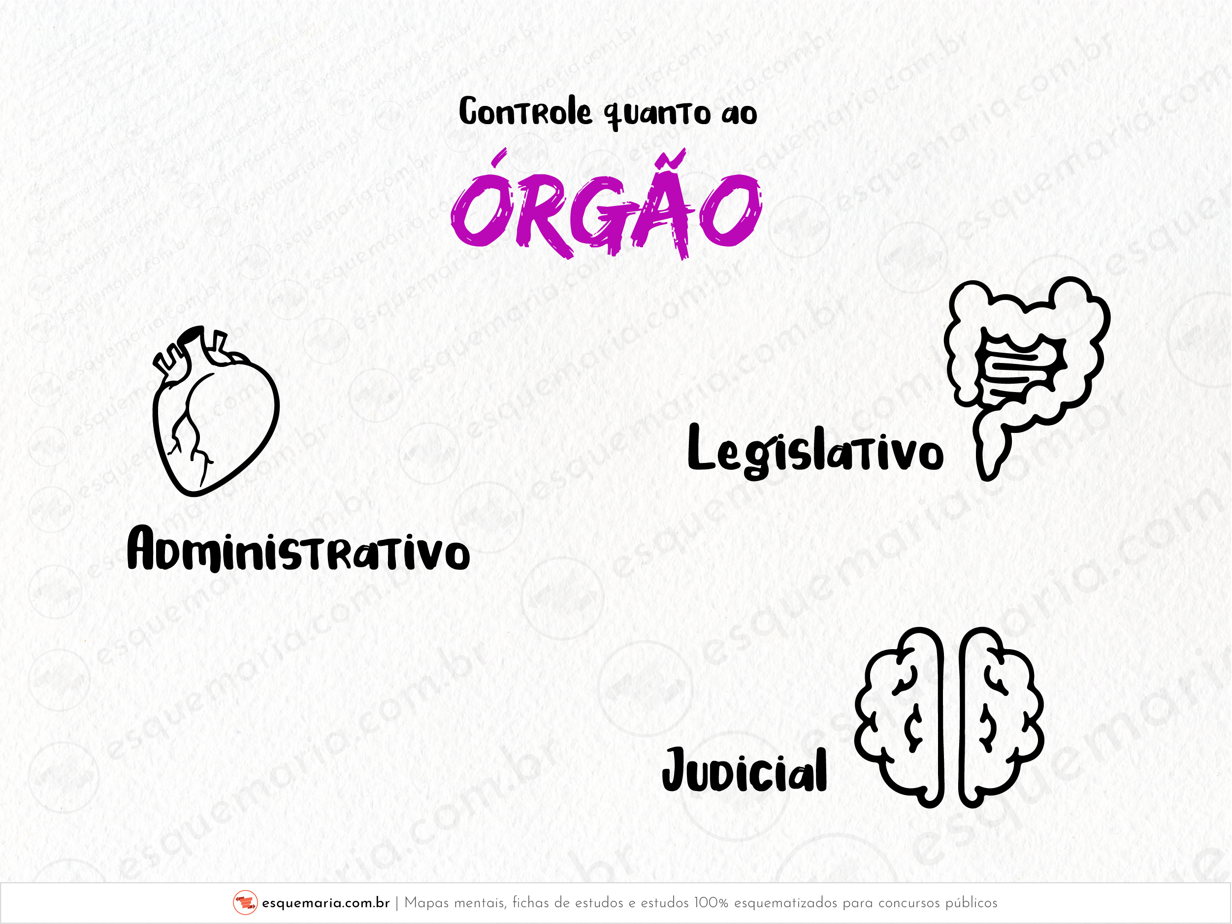 Quanto ao órgão que o exerce, o controle pode ser administrativo, legislativo ou judicial.
