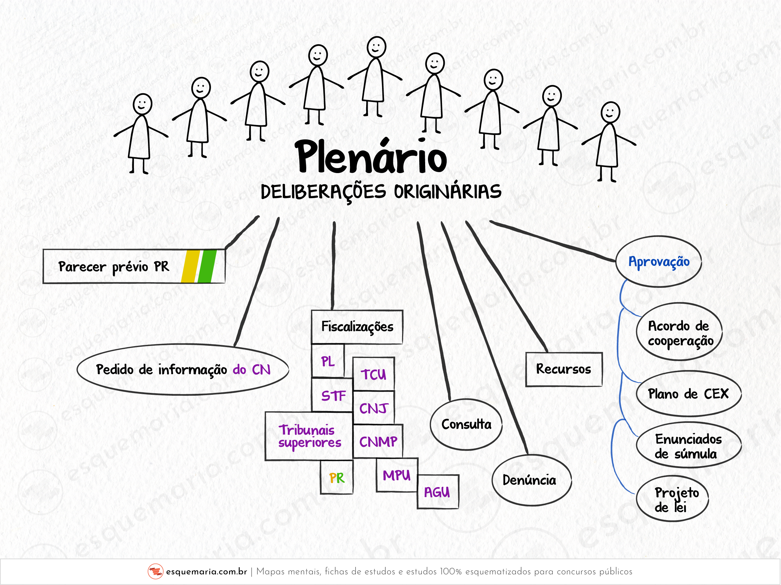 Para esta parte, vou primeiro te pedir para ler todas as competências trazidas pelo RITCU (abaixo anotadas) e, depois, peço para você ler o esquema que fiz, combinado? Vamos lá. | |