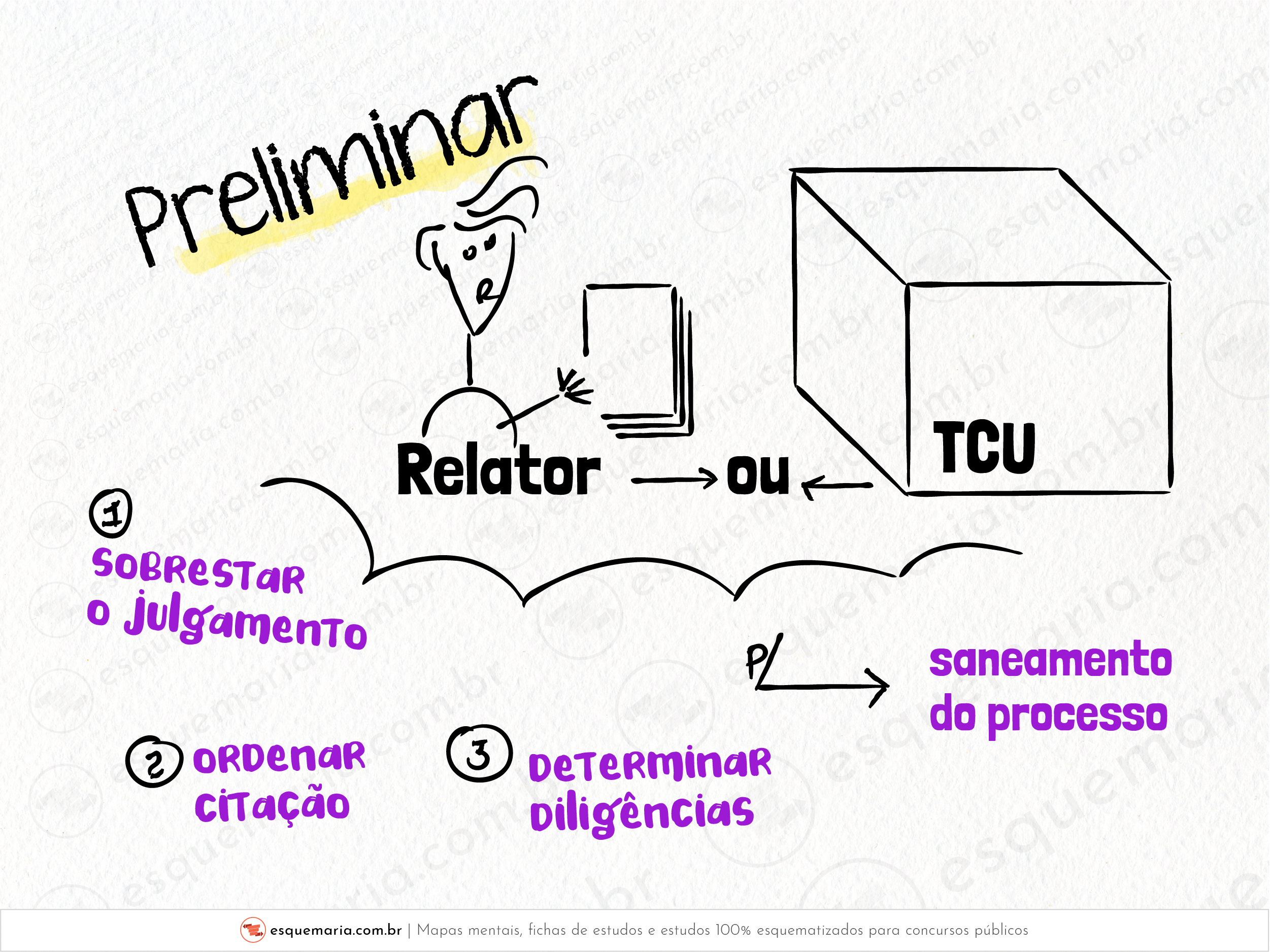 I. Preliminar é a decisão pela qual o Relator ou órgão colegiado, antes de pronunciar-se quanto ao mérito das contas, resolve ordenar a citação, intimação ou a manifestação dos responsáveis ou, ainda, determinar outras diligências necessárias à instrução do processo, observadas as limitações e vedações previstas nesta lei, bem como, as regras de formalização dos atos previstas no Código de Processo Civil, no que couber.